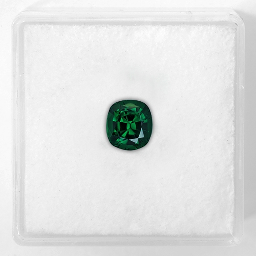 Very intense, pure green hue, no modifier. Flawless clarity. A top grade Tsavorite in all respects.