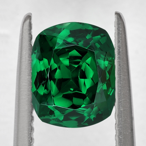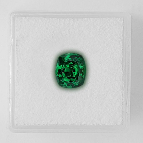 Kuranze is a Tsavorite deposit world renowned for its spectacular color. This deposit is in the area where Tsavorite was first discovered, near the famous Tsavo game reserve. contains more chromium than most and the result is a truly spectacular green that would put the finest Muzo emerald to shame. This wonderful 2.16 carat cushion is from this deposit. Superb color - a blue-green of incredible saturation. At 2+ carats, it is a very rare gemstone.