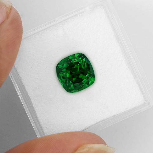 A very rare and truly stunning Tsavorite. Pure unadulterated green. Reminiscent of the finest Columbian emerald but with more sparkle due to Tsavorite's higher refractive index. Tsavorites over 2 carats in this grade are very rare indeed. Flawless clarity and exceptional color.