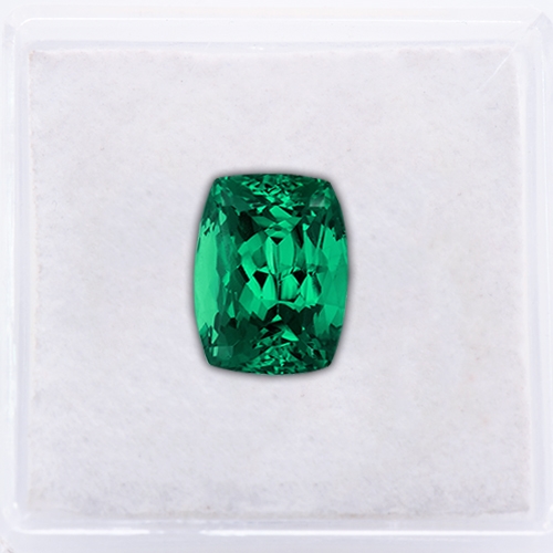 Tsavorites are rarely mined in 4 carat sizes, especially in flawless clarities. This wonderful 4.30 carat long cushion is a unique and exciting gemstone. It truly glitters and glows with light. It mesmerizes. It boasts the finest Tsavorite pedigree in all respects.It is sensational.