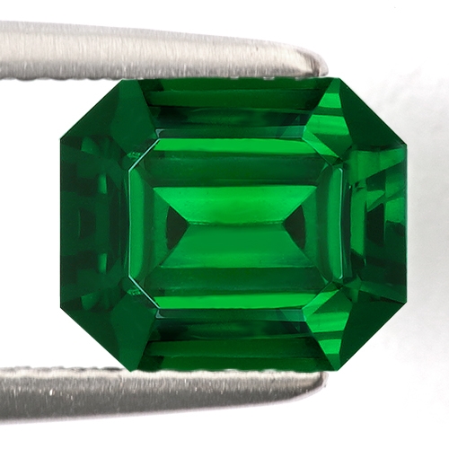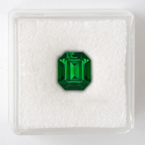 A wonderful Tsavorite. Fine "emerald green" from the original Tsavo deposit. In contrast to their Tanzanian mined counterparts, the Kenyan Tsavorites carry a more pure emerald green rather than the more yellowish greens seen in Tanzanian stones. This particular piece is exceptional in all respects. At 2.42 carats, it is rare (most Tsavorites are very small) and has very high clarity, excellent cutting and top color. It almost glows with intensity. Exceptional