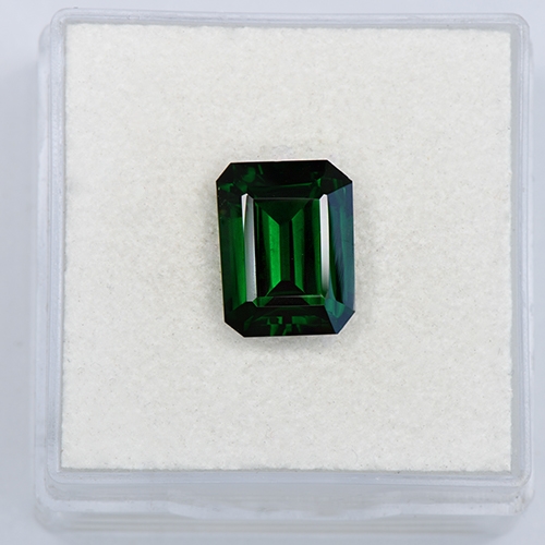 This 3.06 Carat Emerald Cut Tsavorite gemstone features robust, intense green hues that are pure and unmodified. Its sleek, elegant lines enhance its beauty, complementing its flawless clarity. The gem's exceptional color and cut make it a standout piece, perfect for creating sophisticated and timeless jewelry designs. Its purity and vibrancy make it a valuable addition to any collection.