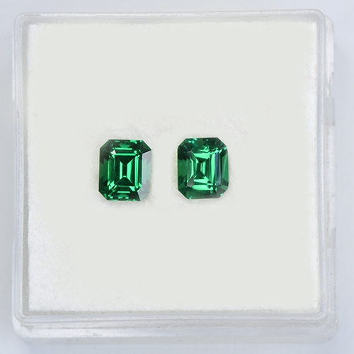 This matched pair of 1.31 carat (total weight) Emerald Cut Tsavorites, features luxurious silky blue-green hues with plenty of sparkle and high clarity. These exceptional gems are perfect for stud earrings or as sidestones in a ring, showcasing a captivating depth of color and brilliance. They are a rare and valuable find, ideal for adding elegance to any jewelry piece.