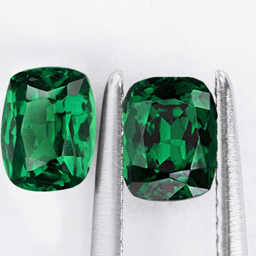 Stunning, sparkling bluish green Tsavorites. .If you have been unimpressed with the dearth of pale yellowish green Tsavorite on the market then this pair is for you. Both stones are flawless.
