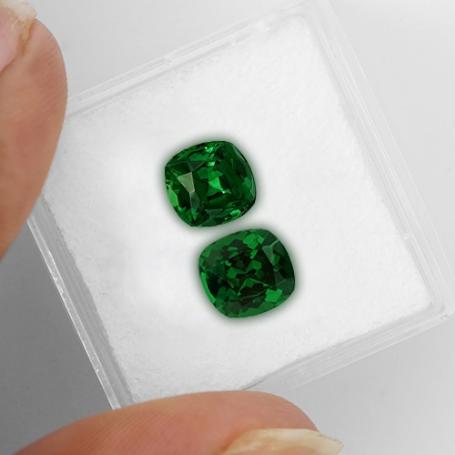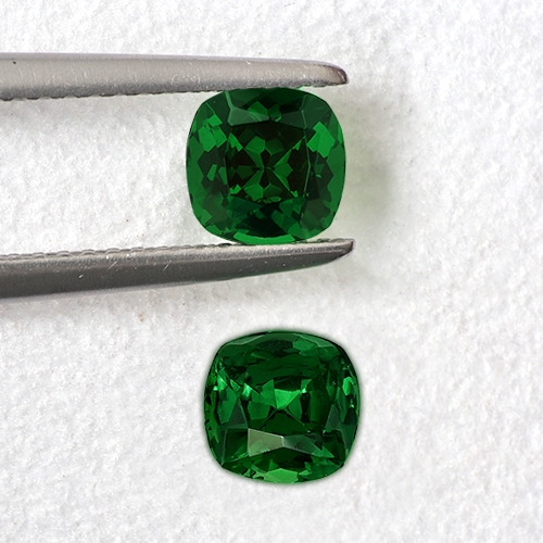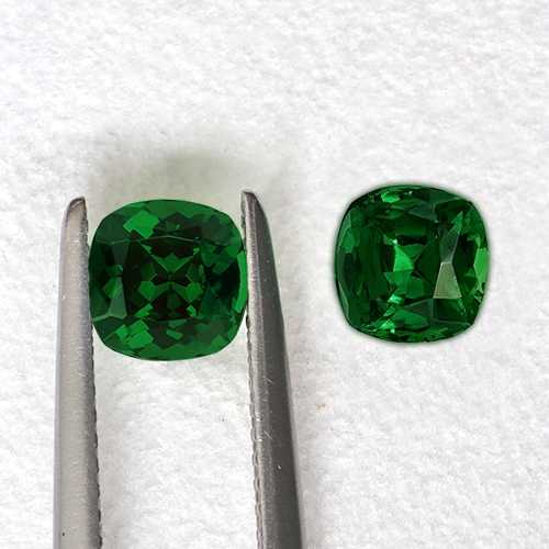 Superb. This gorgeous matched pair of cushions boasts top color grade, flawless clarity and plenty of brilliance. Absolutely top grade in all respects.