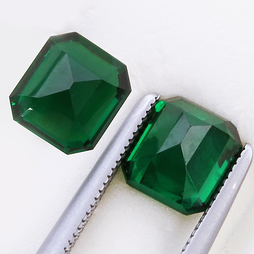 Intense, blue-green Emerald cuts. This wonderful matched pair catch your attention with their pure presence. Would make fantastic stud earrings or perhaps as sidestones in a ring next to a Diamond centerstone. Very fine Tsavorites indeed.