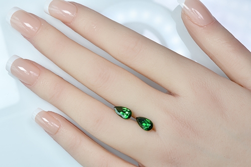This exquisite and luxurious matched pair of Pear Step Cut Tsavorites showcase a robust and deep green color that is almost velvety in its richness. Such is the intensity and vividness of their color, they surpass the innate splendor of the finest Emeralds, putting them in the shade with their magnificent hue. The beauty of these tsavorites is amplified by their matching pair status. Their harmonious visual balance not only enhances their individual beauty but also elevates the overall aesthetic of the jewelry they are set in. These beautifully cut sleek long pear shapes, would make striking hanging earrings.