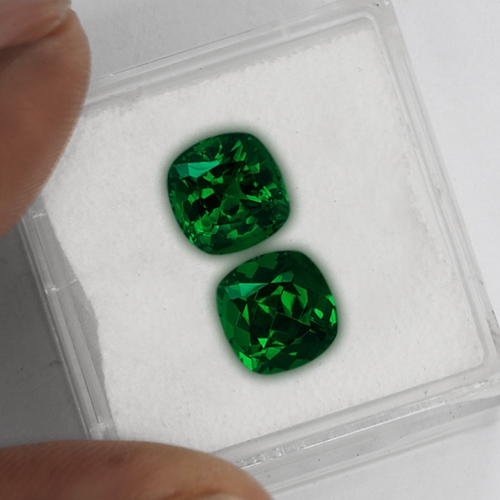Well they don't come any better than this. Tsavorites in the 2 carat range in fine colors and clarities are rare but as a matched pair they are even rarer. We were extremely lucky to be able to purchase a newly discovered pocket of very fine Tsavorites which allowed us to cut this exceptional matched pair. Truly intoxicating color and top clarity. They don't come better!