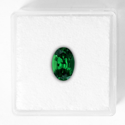 Exuding a bright, glowing blue-green hue that is highly coveted in the trade, this is a gorgeous Tsavorite indeed. A sleek, long oval which which truly sparkles. Great cutting and flawless - stunning!