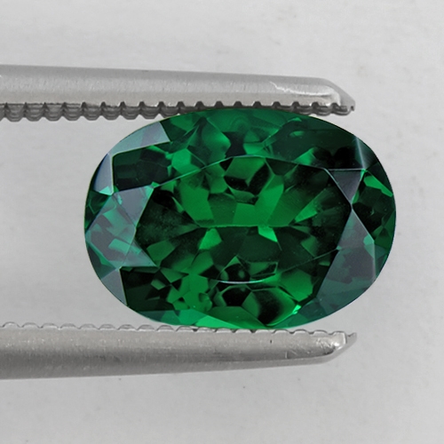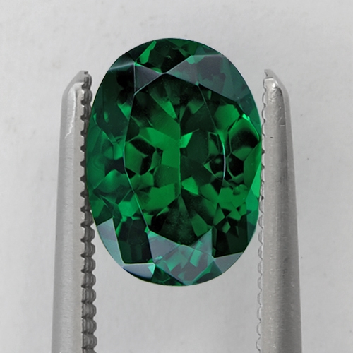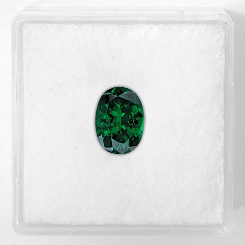 Top, intense, unadulterated emerald green. Unlike the Tanzanian deposit, this area of Kenya, the original deposit in Tsavo produces pure green stones with little or no yellow modifier. This stone is a case in point. This stunning, sleek long oval cut has superb color and flawless clarity. A very fine Tsavorite.