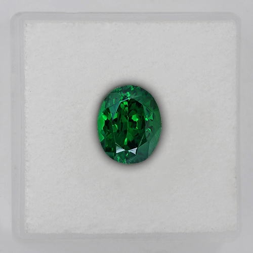 A wonderful Tsavorite. Fine "emerald green" from the original deposit in the Tsavo district of Kenya. In contrast to their Tanzanian mined counterparts, the Kenyan Tsavorites carry a more pure emerald green rather than the more yellowish greens seen in Tanzanian stones.Combined with flawless clarity, this is a fine piece.