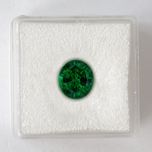 At almost 3 carats this is an excellent buy as you get a 2 carat price but the stone looks like 3 carater. What's more, this is a top grade Tsavorite in all respects. The color has to be seen to be believed. It glows with intensity. Far from the yellowish greens of the Tanzanian deposits, this stone boasts an intense bluish green coveted by true connoisseurs of the gem. At just shy of 3 carats, it is extremely rare, particularly as it is flawless. Absolutely superb.