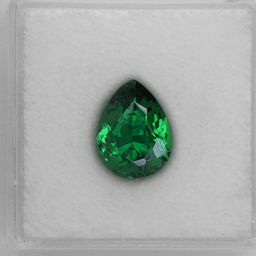 A wonderful Tsavorite. Fine "emerald green" from the original mine in the Tsavo region (the gemstone's namesake) . In contrast to their Tanzanian mined counterparts, the Kenyan Tsavorites carry a more pure emerald green rather than the more yellowish greens seen in Tanzanian stones. This particular piece is exceptional in all respects. At 2.78 carats, it is rare (most Tsavorites are very small) and has flawless clarity, excellent cutting and top color. It almost glows with intensity. Exceptional