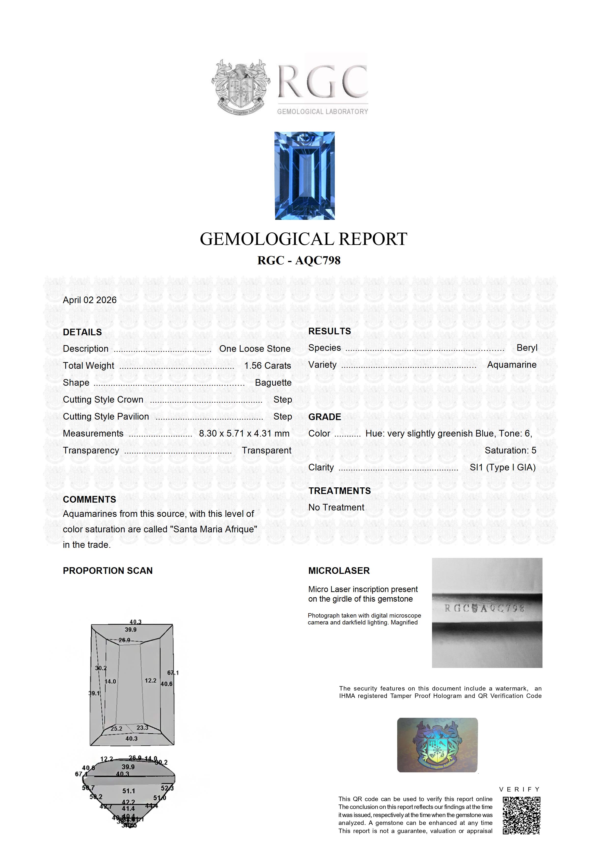 You can view the report in the “Grading and Laboratory Certification” section below.