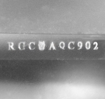 This image is an actual photograph of the laser inscription on this particular gemstone. Photography is done using a microscope camera at 45 x magnification to render the image.