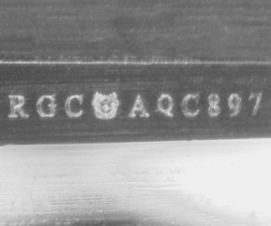 This image is an actual photograph of the laser inscription on this particular gemstone. Photography is done using a microscope camera at 45 x magnification to render the image.