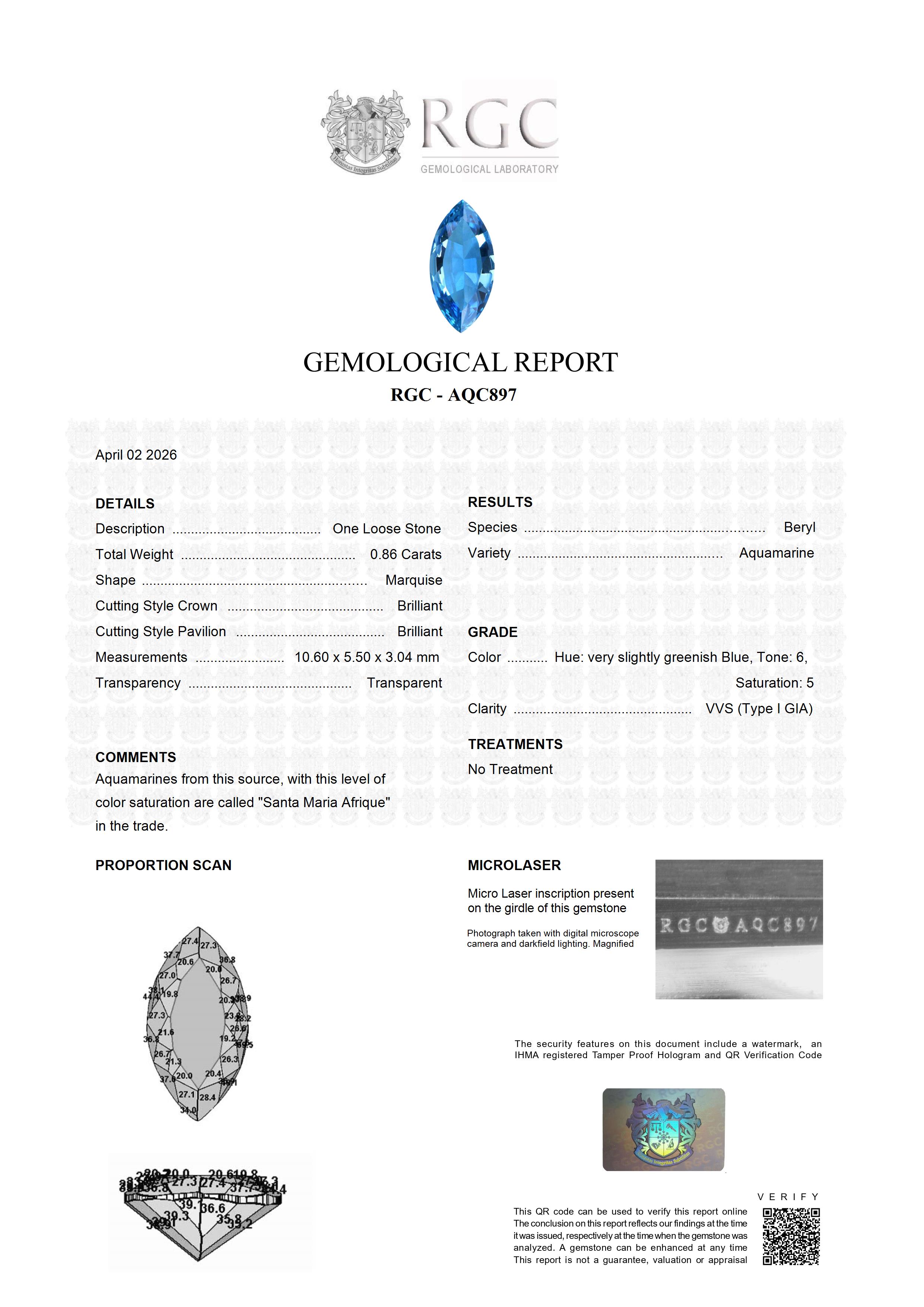You can view the report in the “Grading and Laboratory Certification” section below.