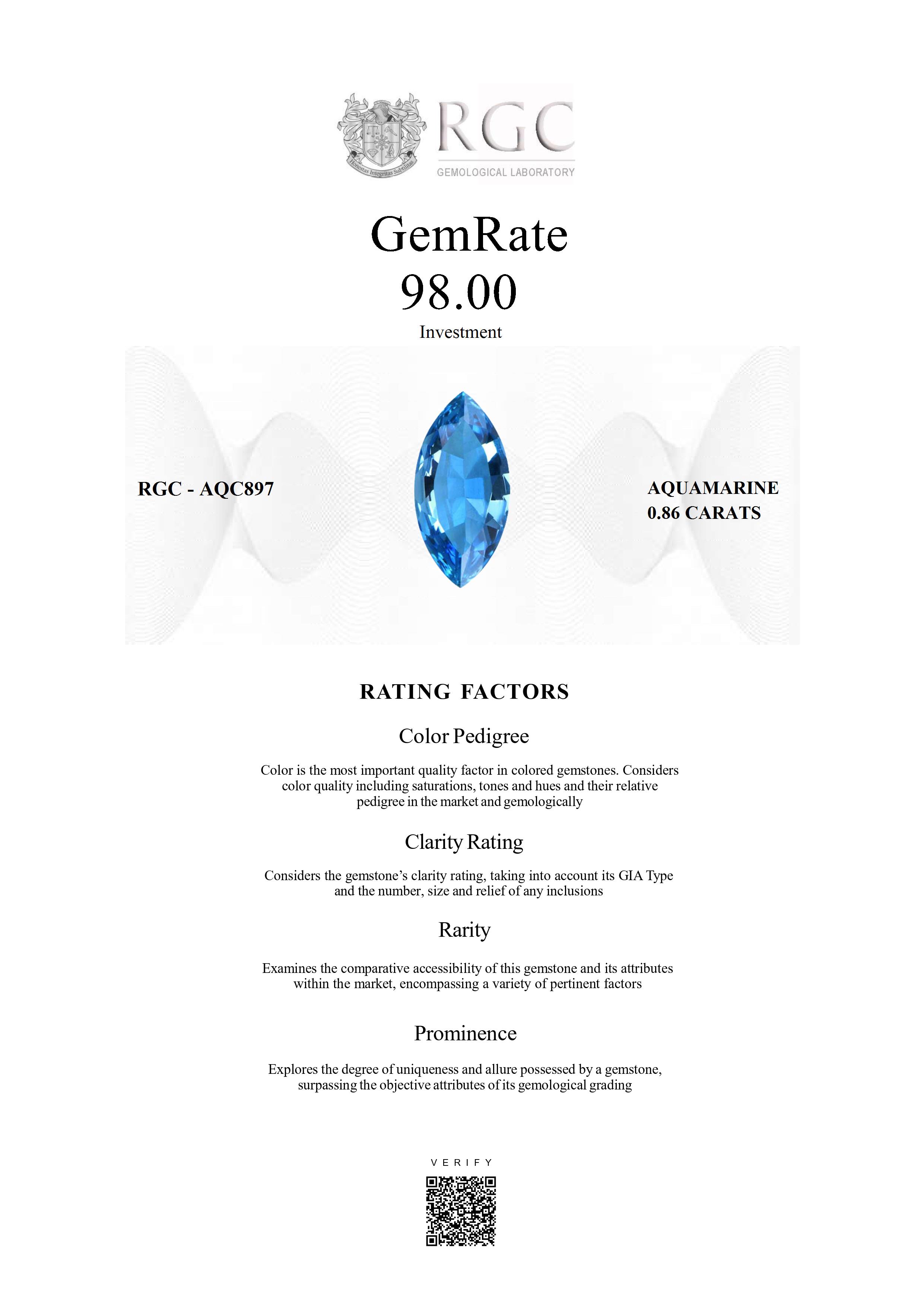 The RGC GemRate is a revolutionary system that addresses the importance and difficulty of comparing different colored gemstones with their peers in the marketplace. It assesses a wide variety of factors that exist in the marketplace and gemologically to classify gems in their genre using a standardized rating system. These factors are myriad but include quantifiable factors like color grade, clarity and cut, rarity factors examining relative rarity and also qualitative factors such as prominence, which examines the degree to which a gemstone stands out and captivates beyond just its measurable quality traits. It's essentially the stone's ability to catch attention and distinguish itself from others.