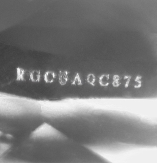 This image is an actual photograph of the laser inscription on this particular gemstone. Photography is done using a microscope camera at 45 x magnification to render the image.