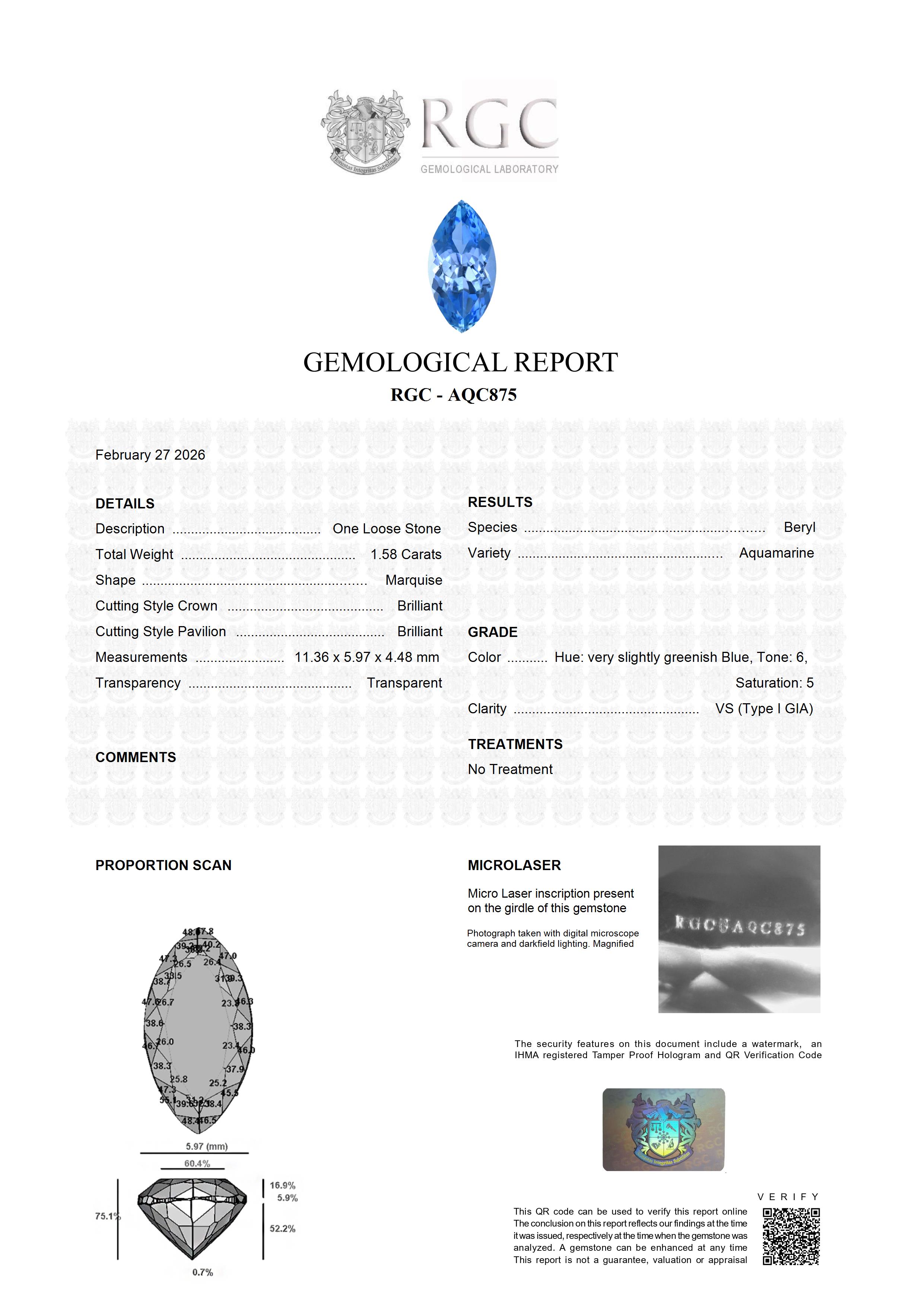 You can view the report in the “Grading and Laboratory Certification” section below.