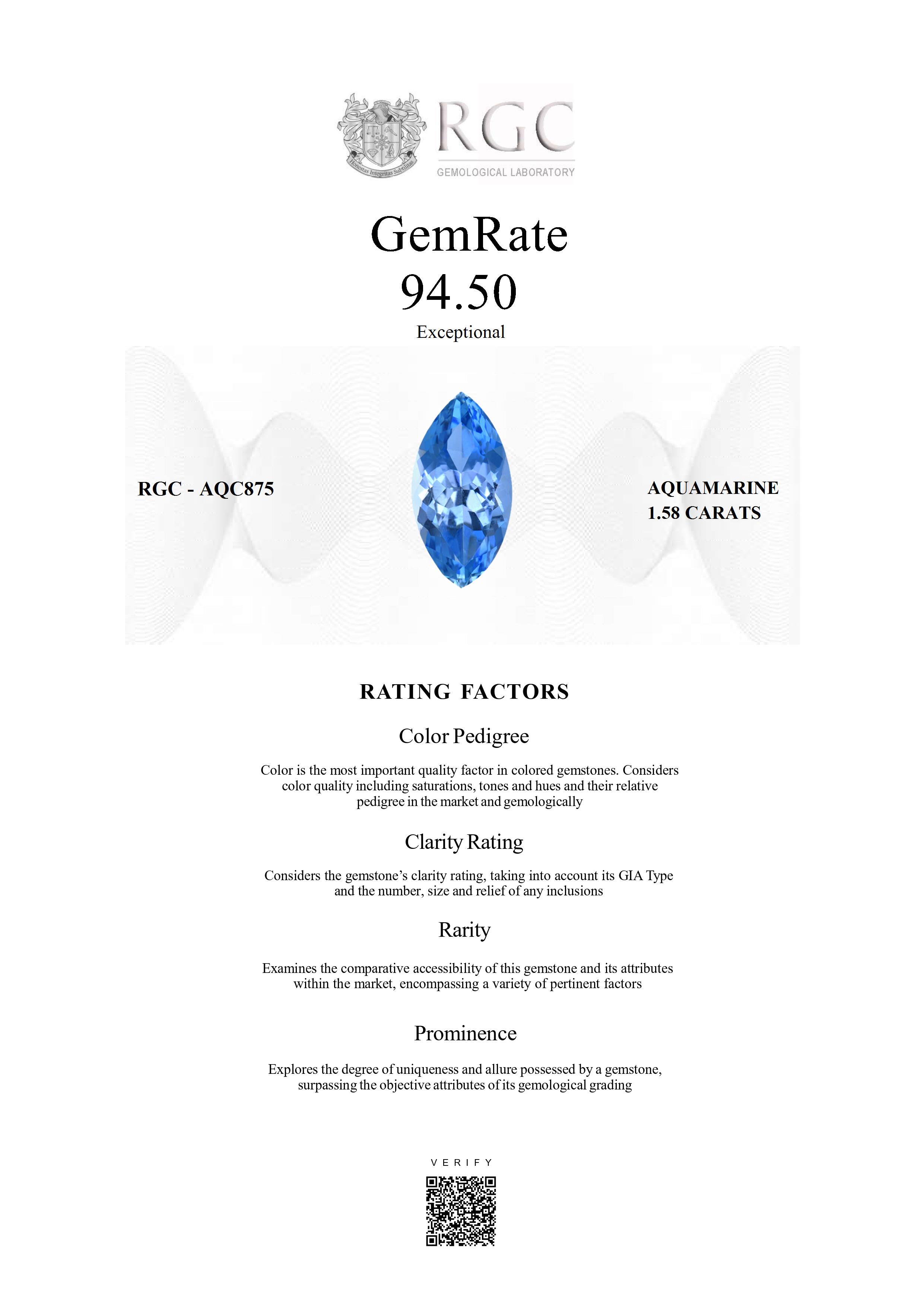 The RGC GemRate is a revolutionary system that addresses the importance and difficulty of comparing different colored gemstones with their peers in the marketplace. It assesses a wide variety of factors that exist in the marketplace and gemologically to classify gems in their genre using a standardized rating system. These factors are myriad but include quantifiable factors like color grade, clarity and cut, rarity factors examining relative rarity and also qualitative factors such as prominence, which examines the degree to which a gemstone stands out and captivates beyond just its measurable quality traits. It's essentially the stone's ability to catch attention and distinguish itself from others.