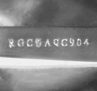 This image is an actual photograph of the laser inscription on this particular gemstone. Photography is done using a microscope camera at 45 x magnification to render the image.