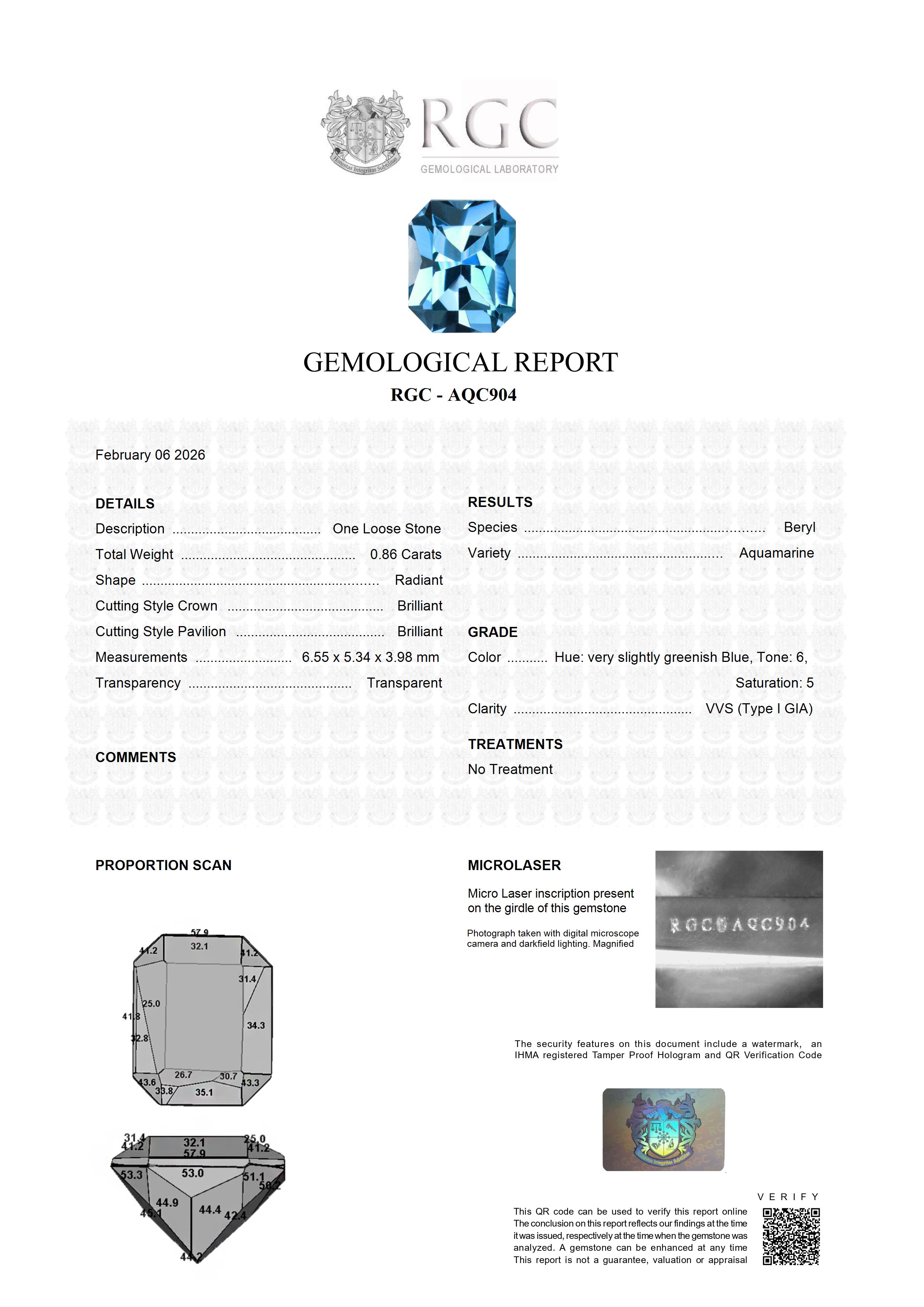 You can view the report in the “Grading and Laboratory Certification” section below.