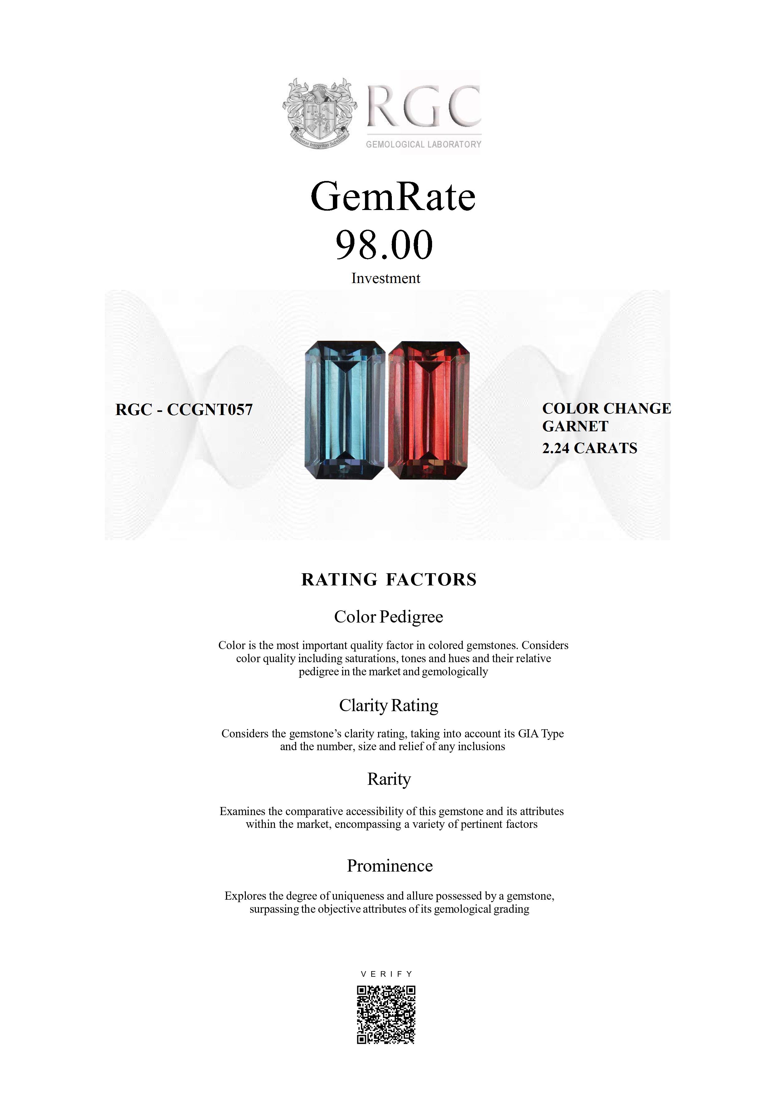 The RGC GemRate is a revolutionary system that addresses the importance and difficulty of comparing different colored gemstones with their peers in the marketplace. It assesses a wide variety of factors that exist in the marketplace and gemologically to classify gems in their genre using a standardized rating system. These factors are myriad but include quantifiable factors like color grade, clarity and cut, rarity factors examining relative rarity and also qualitative factors such as prominence, which examines the degree to which a gemstone stands out and captivates beyond just its measurable quality traits. It's essentially the stone's ability to catch attention and distinguish itself from others.