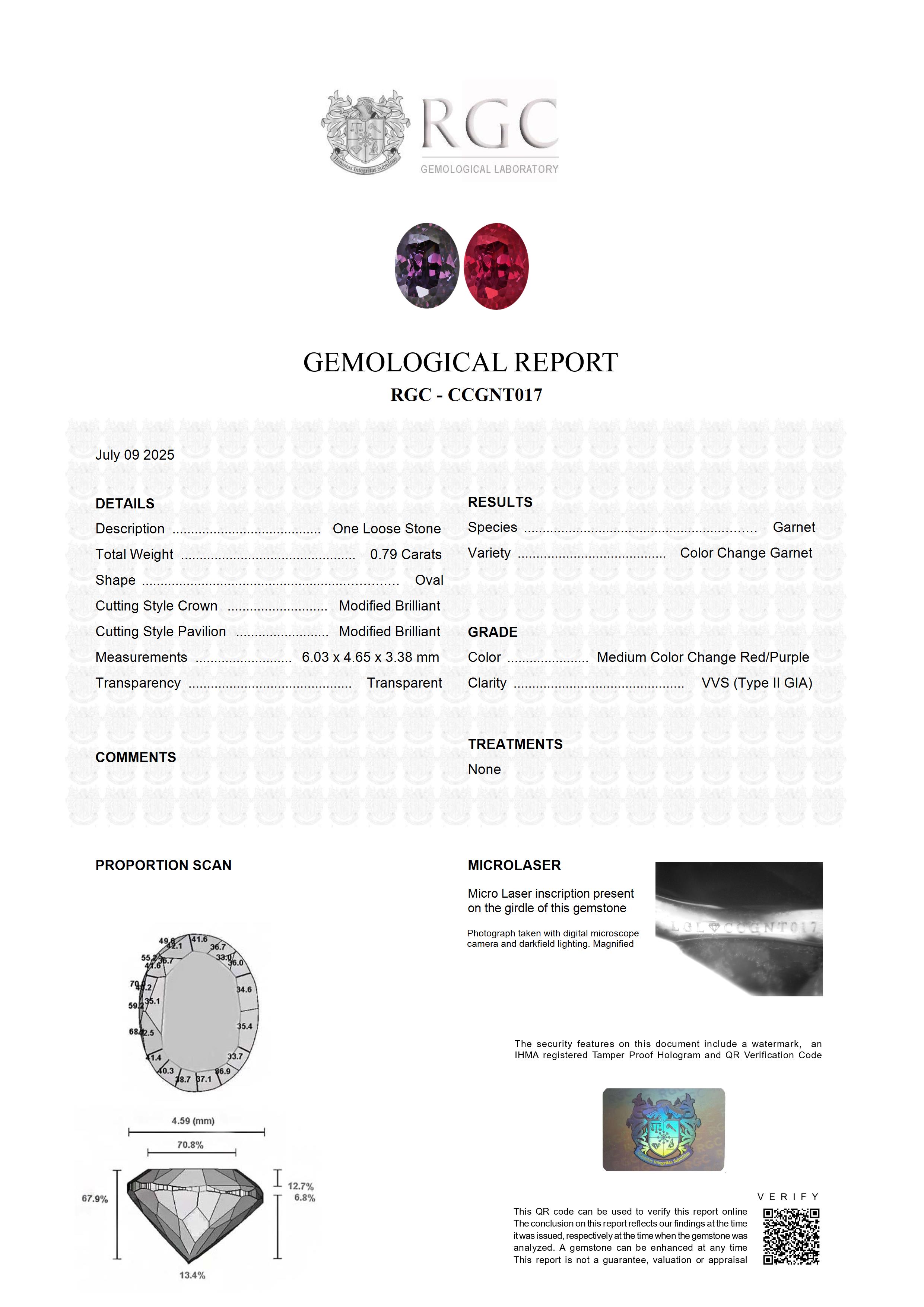 • GIA Color Grade: Med. Color Change (Medium Color Change Red/Purple)