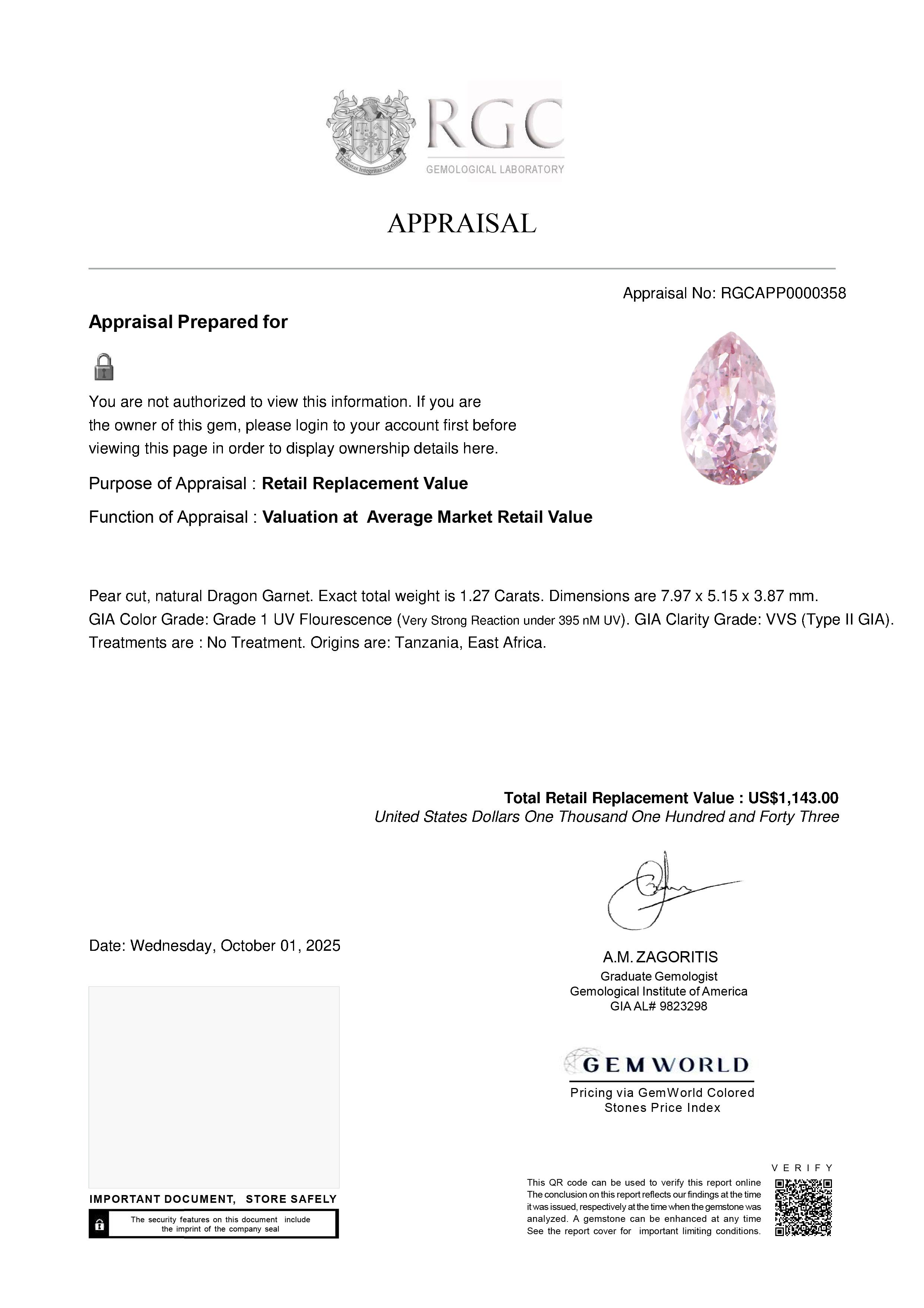 Dragon Garnets are an extremely rare type of Malaia Garnet that flouresce strongly to UV light. They have become a highly sought after collector's gemstone due to their exceptional rarity and incredible gemological properties.