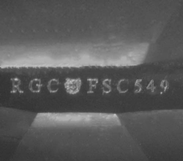 This image is an actual photograph of the laser inscription on this particular gemstone. Photography is done using a microscope camera at 45 x magnification to render the image.