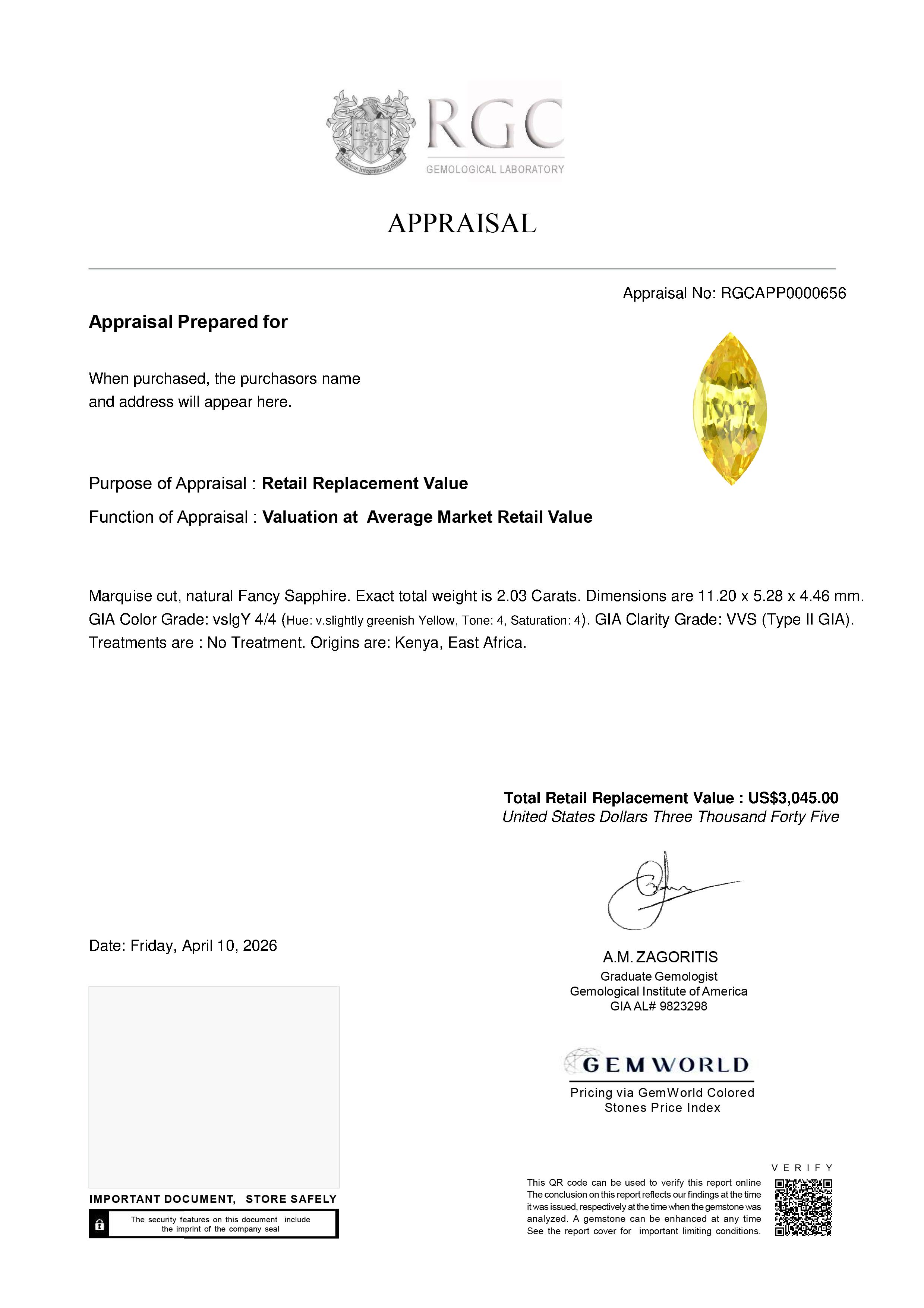 Our GemRate system was devised by our GIA Gemologists to provide a snapshot of a gemstone’s pedigree. This report is shipped with the gemstone.