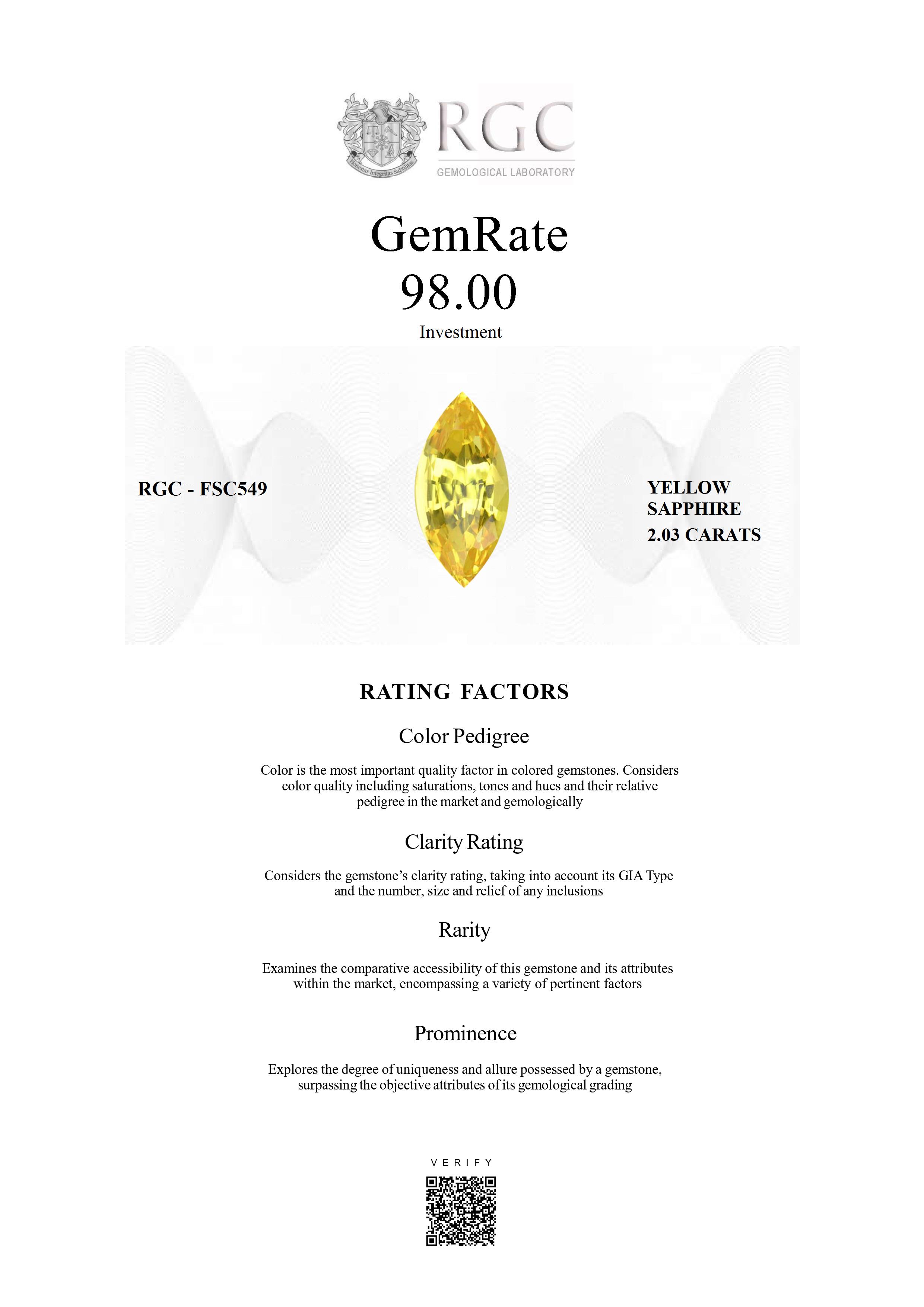 The RGC GemRate is a revolutionary system that addresses the importance and difficulty of comparing different colored gemstones with their peers in the marketplace. It assesses a wide variety of factors that exist in the marketplace and gemologically to classify gems in their genre using a standardized rating system. These factors are myriad but include quantifiable factors like color grade, clarity and cut, rarity factors examining relative rarity and also qualitative factors such as prominence, which examines the degree to which a gemstone stands out and captivates beyond just its measurable quality traits. It's essentially the stone's ability to catch attention and distinguish itself from others.
