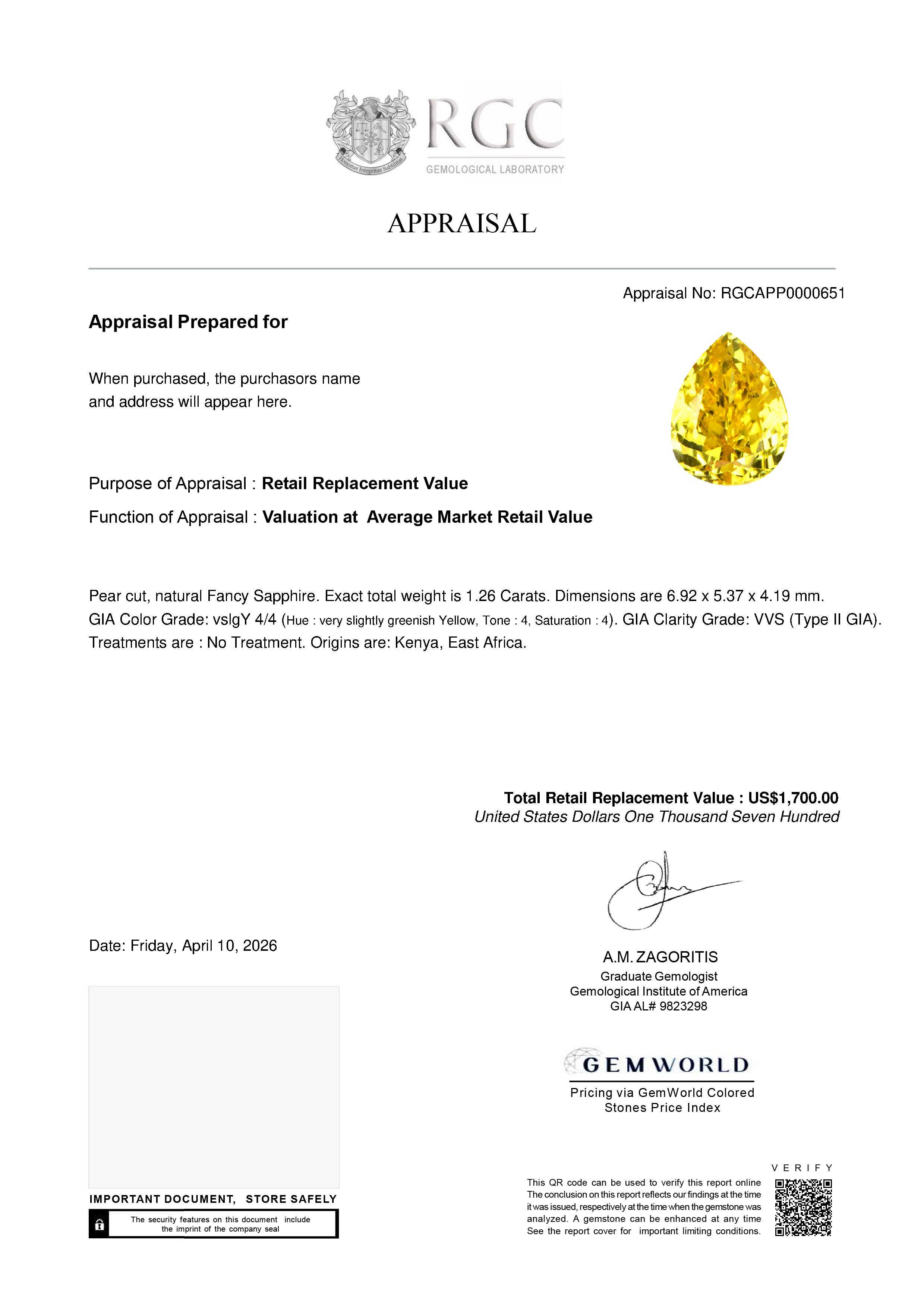 Our GemRate system was devised by our GIA Gemologists to provide a snapshot of a gemstone’s pedigree. This report is shipped with the gemstone.