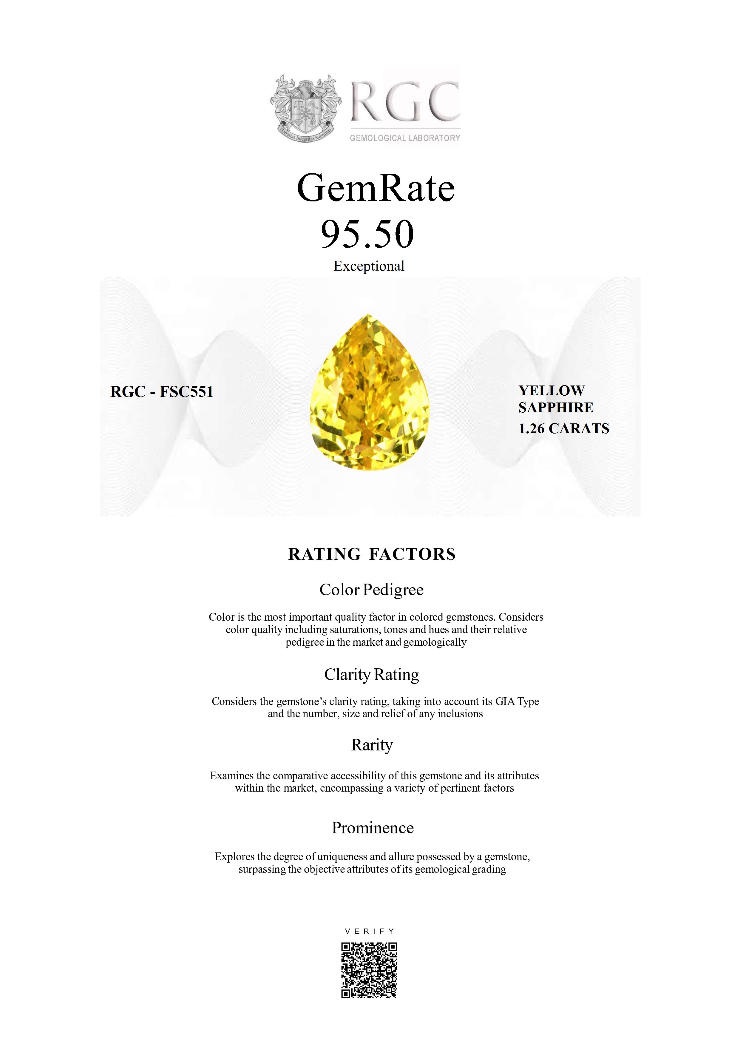 The RGC GemRate is a revolutionary system that addresses the importance and difficulty of comparing different colored gemstones with their peers in the marketplace. It assesses a wide variety of factors that exist in the marketplace and gemologically to classify gems in their genre using a standardized rating system. These factors are myriad but include quantifiable factors like color grade, clarity and cut, rarity factors examining relative rarity and also qualitative factors such as prominence, which examines the degree to which a gemstone stands out and captivates beyond just its measurable quality traits. It's essentially the stone's ability to catch attention and distinguish itself from others.