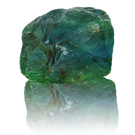 This Fancy Sapphire is over 200 Million Years old. After being removed from the vein and "knocked" to remove the host rock, this Fancy Sapphire weighed 4.301 Grams. The photograph on the left, shows it as it looked at this stage in its journey. Tests showed it has a Specific Gravity of 3.95, an optic character of DR Unixial - and it formed in the Othorhombic crystal system. Its Chemical Composition is Aluminium Oxide and its Cause of Color is Iron / Vanadium