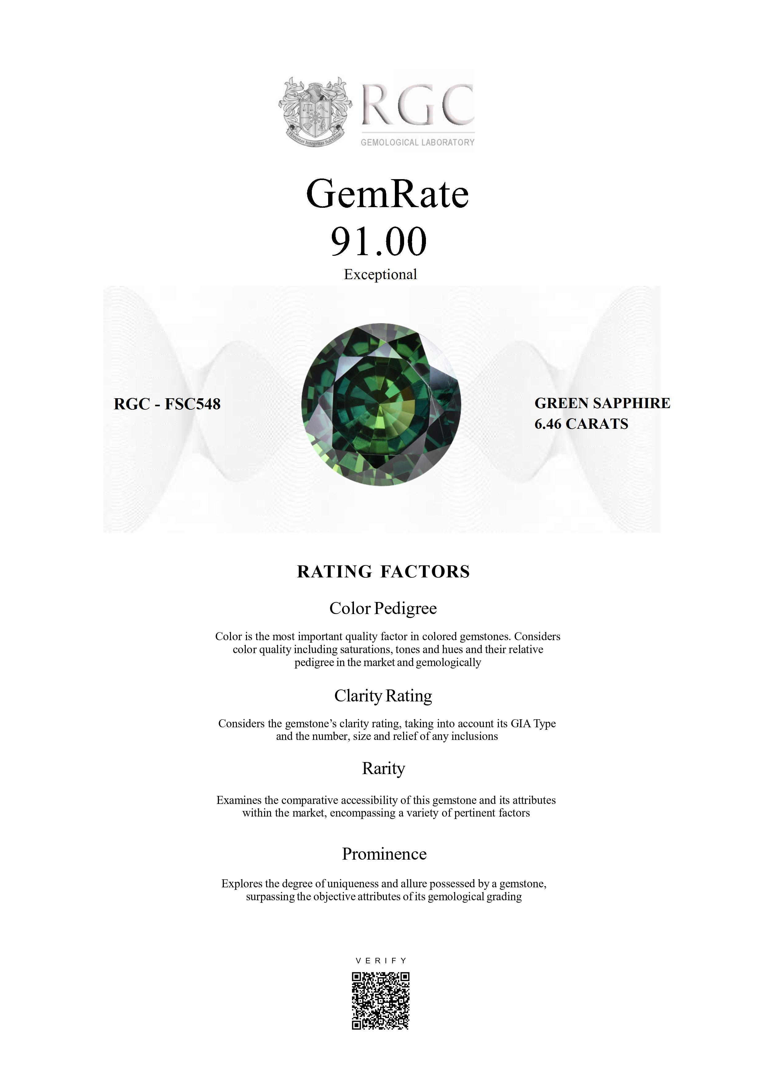 The RGC GemRate is a revolutionary system that addresses the importance and difficulty of comparing different colored gemstones with their peers in the marketplace. It assesses a wide variety of factors that exist in the marketplace and gemologically to classify gems in their genre using a standardized rating system. These factors are myriad but include quantifiable factors like color grade, clarity and cut, rarity factors examining relative rarity and also qualitative factors such as prominence, which examines the degree to which a gemstone stands out and captivates beyond just its measurable quality traits. It's essentially the stone's ability to catch attention and distinguish itself from others.