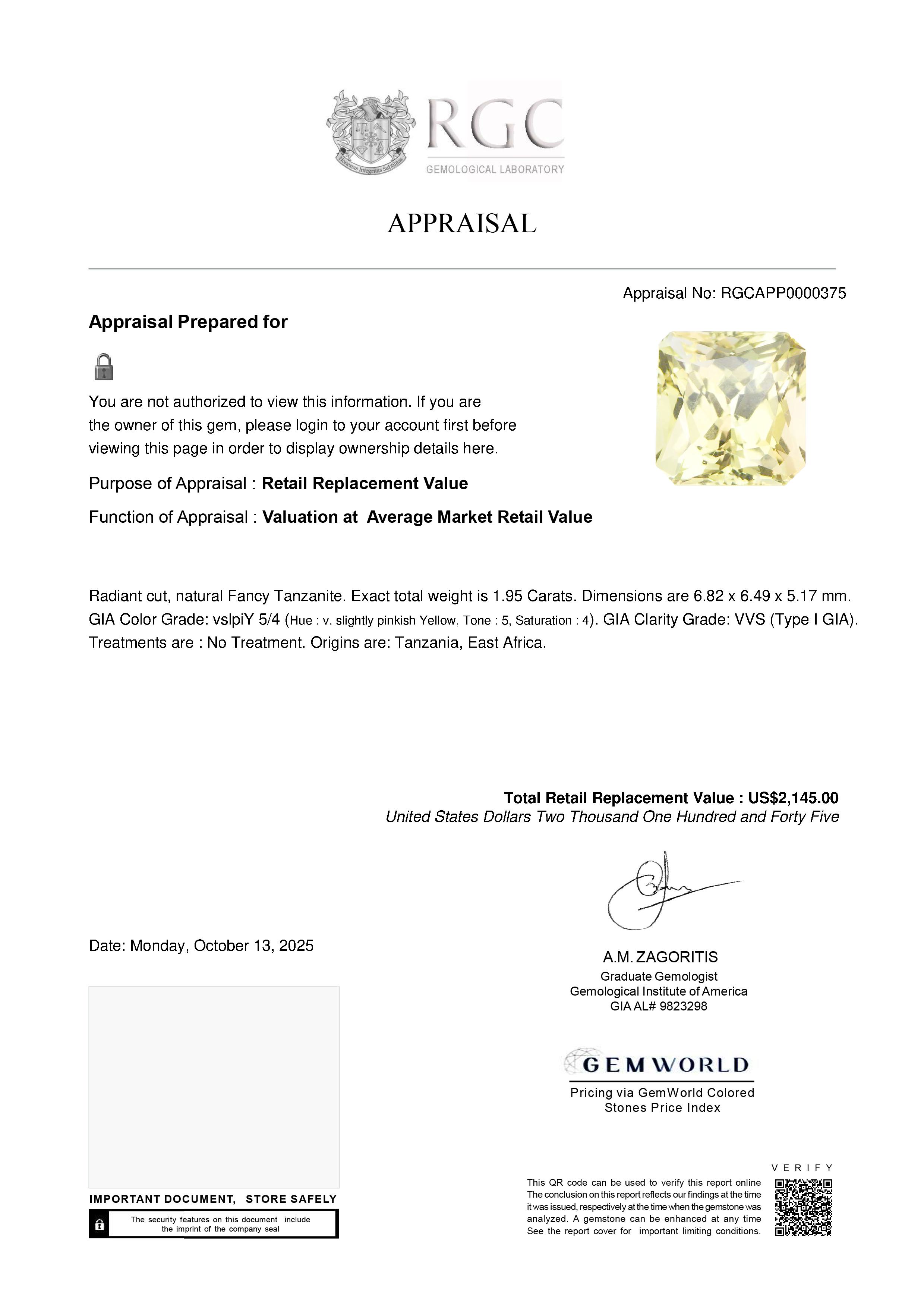 Our GemRate system was devised by our GIA Gemologists to provide a snapshot of a gemstone’s pedigree. This report is shipped with the gemstone.