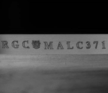This image is an actual photograph of the laser inscription on this particular gemstone. Photography is done using a microscope camera at 45 x magnification to render the image.