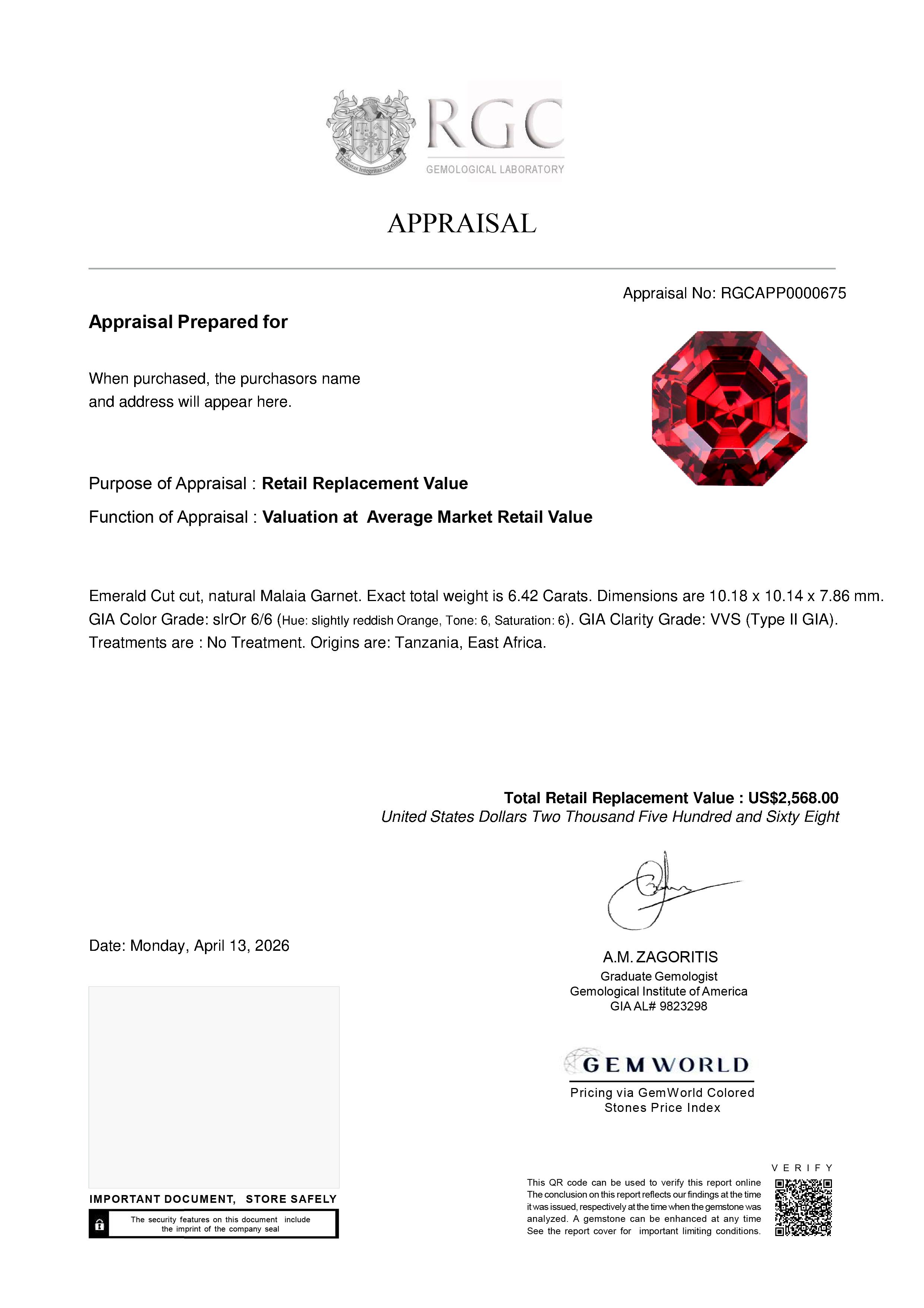 Our GemRate system was devised by our GIA Gemologists to provide a snapshot of a gemstone’s pedigree. This report is shipped with the gemstone.