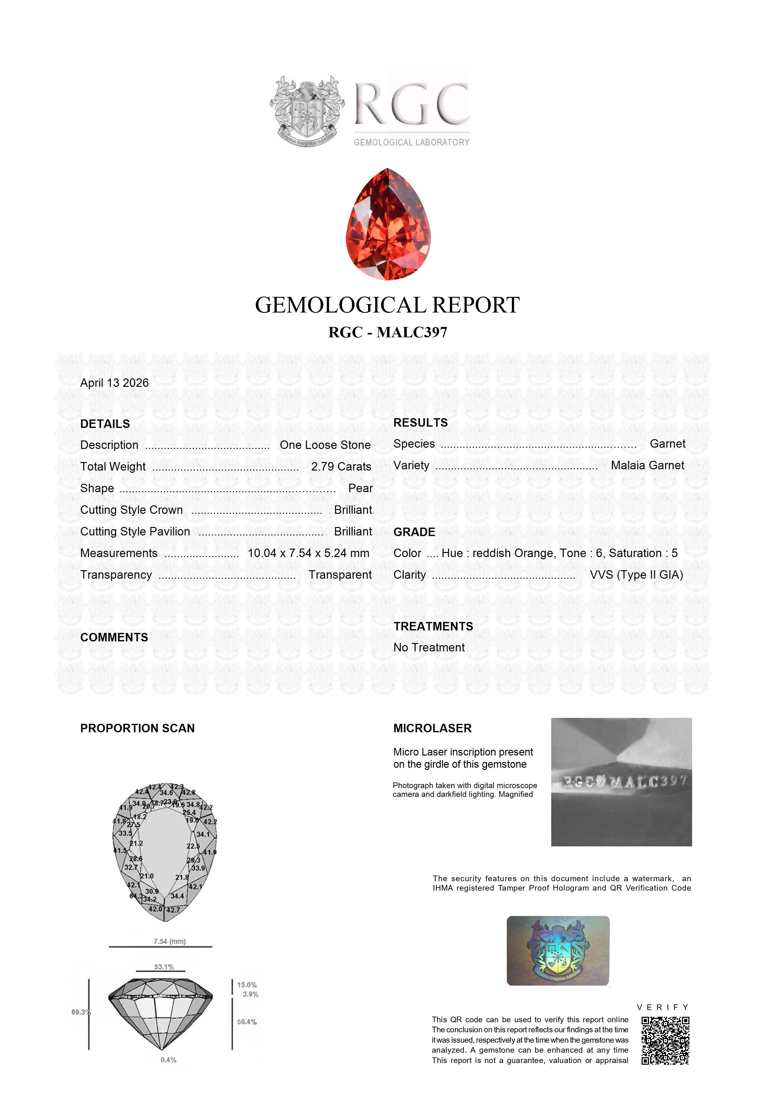 Our GemRate system was devised by our GIA Gemologists to provide a snapshot of a gemstone’s pedigree. This report is shipped with the gemstone.