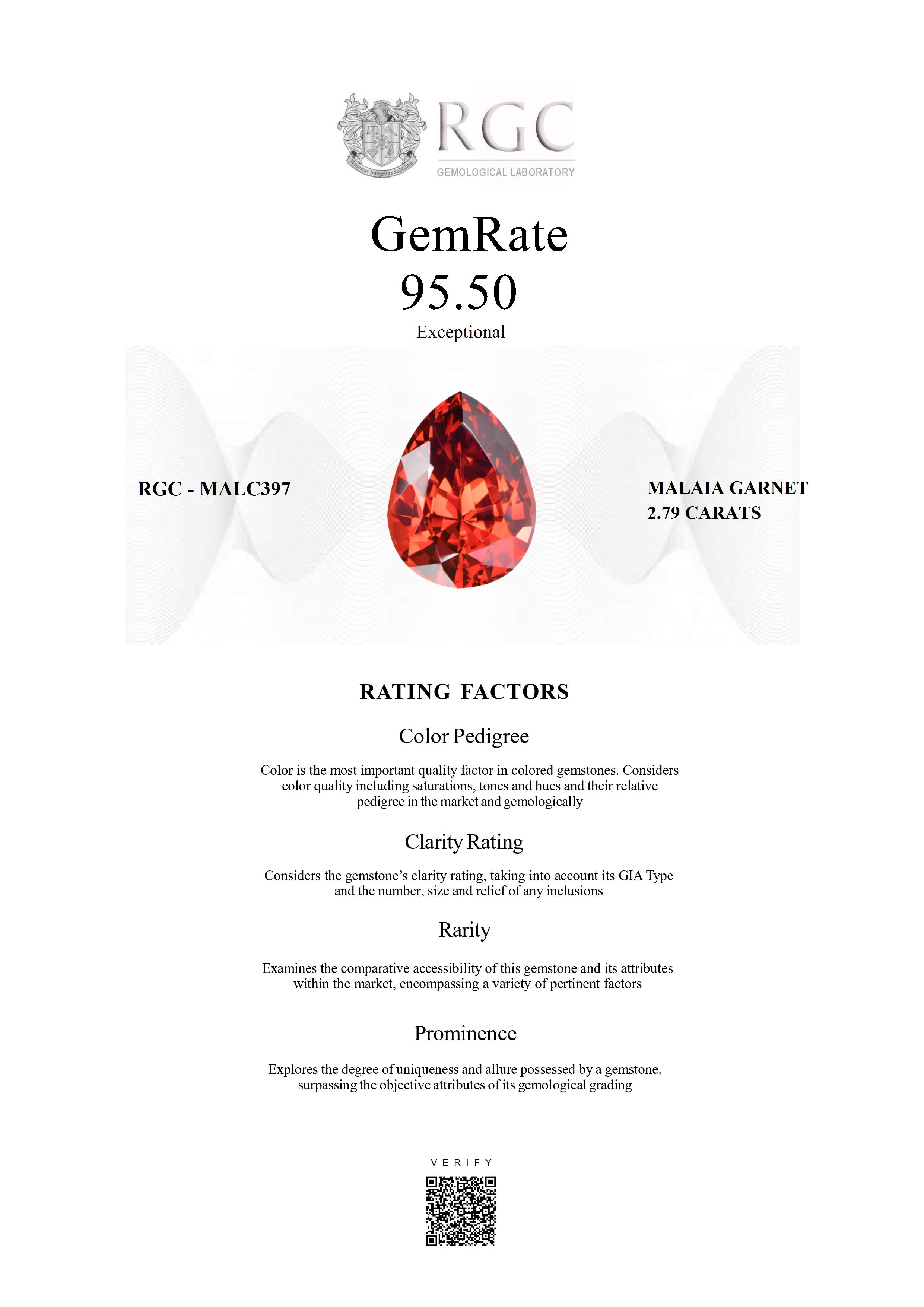 The RGC GemRate is a revolutionary system that addresses the importance and difficulty of comparing different colored gemstones with their peers in the marketplace. It assesses a wide variety of factors that exist in the marketplace and gemologically to classify gems in their genre using a standardized rating system. These factors are myriad but include quantifiable factors like color grade, clarity and cut, rarity factors examining relative rarity and also qualitative factors such as prominence, which examines the degree to which a gemstone stands out and captivates beyond just its measurable quality traits. It's essentially the stone's ability to catch attention and distinguish itself from others.