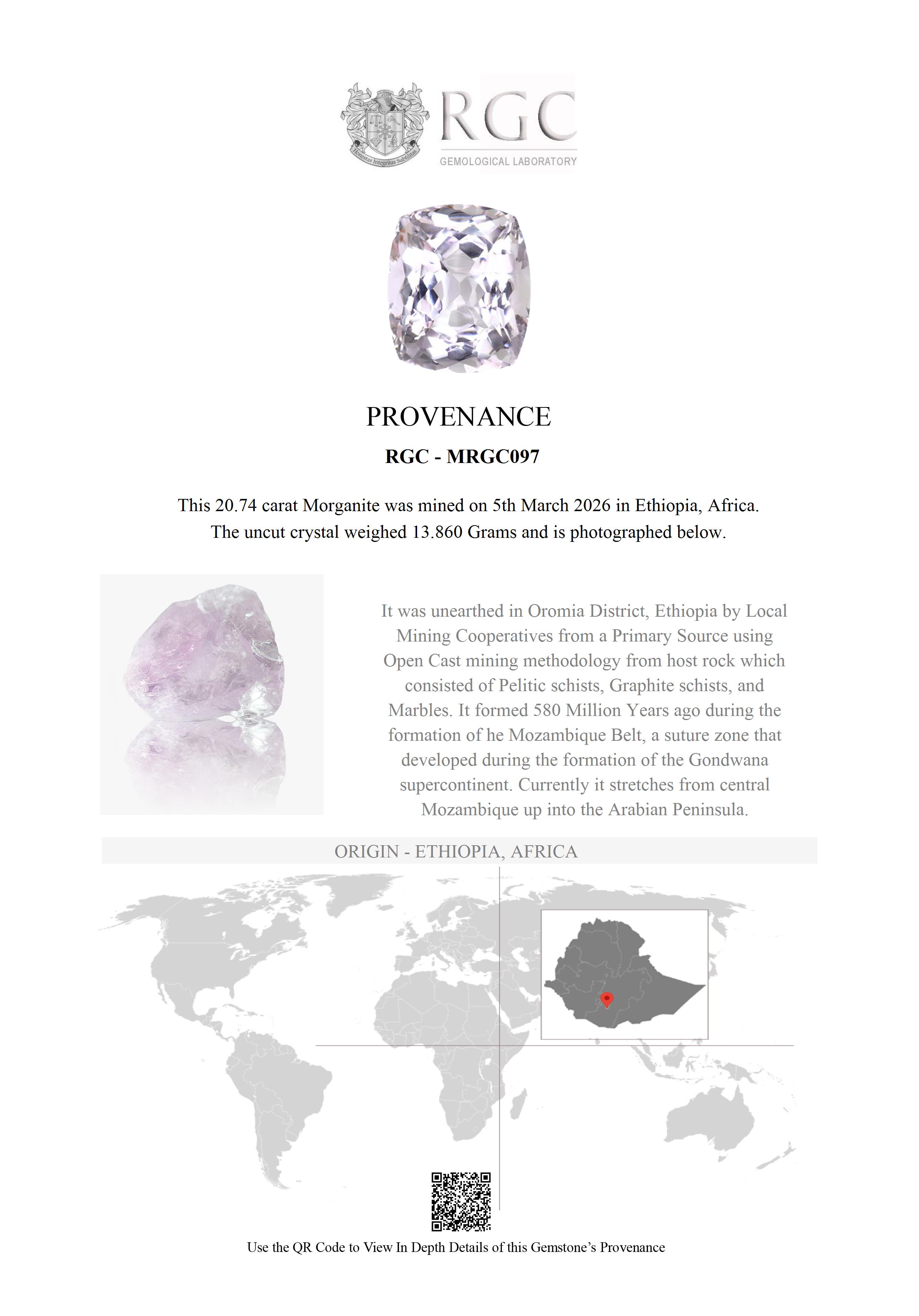 The recent discovery of Morganite occurred as miners hunted for Emerald in the Oromia district in the ancient kingdom of Ethiopia. The Morganite found was of very high quality and some larger crystals were available in the early days of mining. We purchased some of the best and cut them to a very high standard.