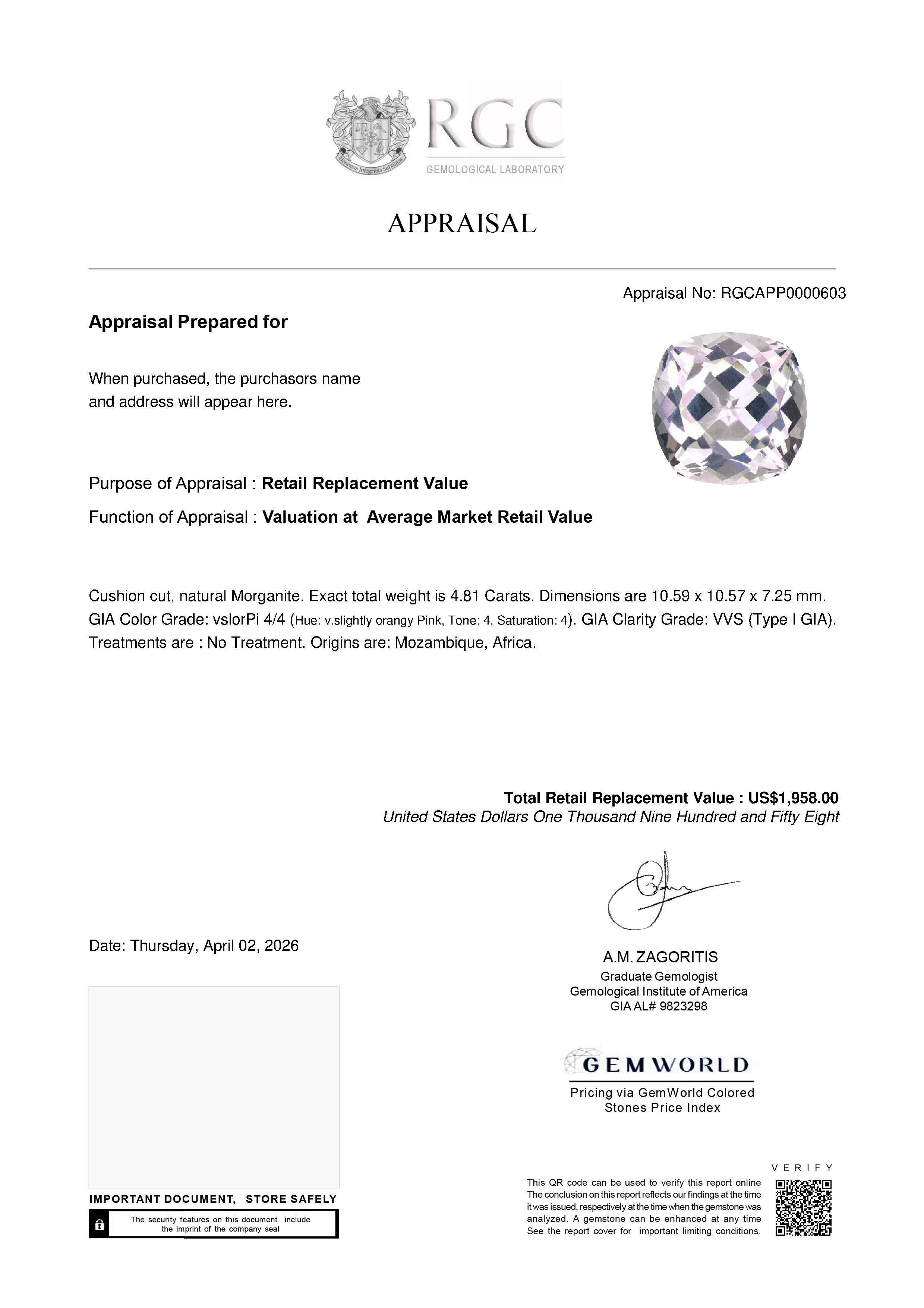 These Professional Gemological Reports will ship with the gemstone