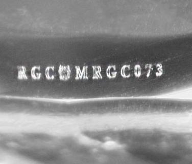 This image is an actual photograph of the laser inscription on this particular gemstone. Photography is done using a microscope camera at 45 x magnification to render the image.