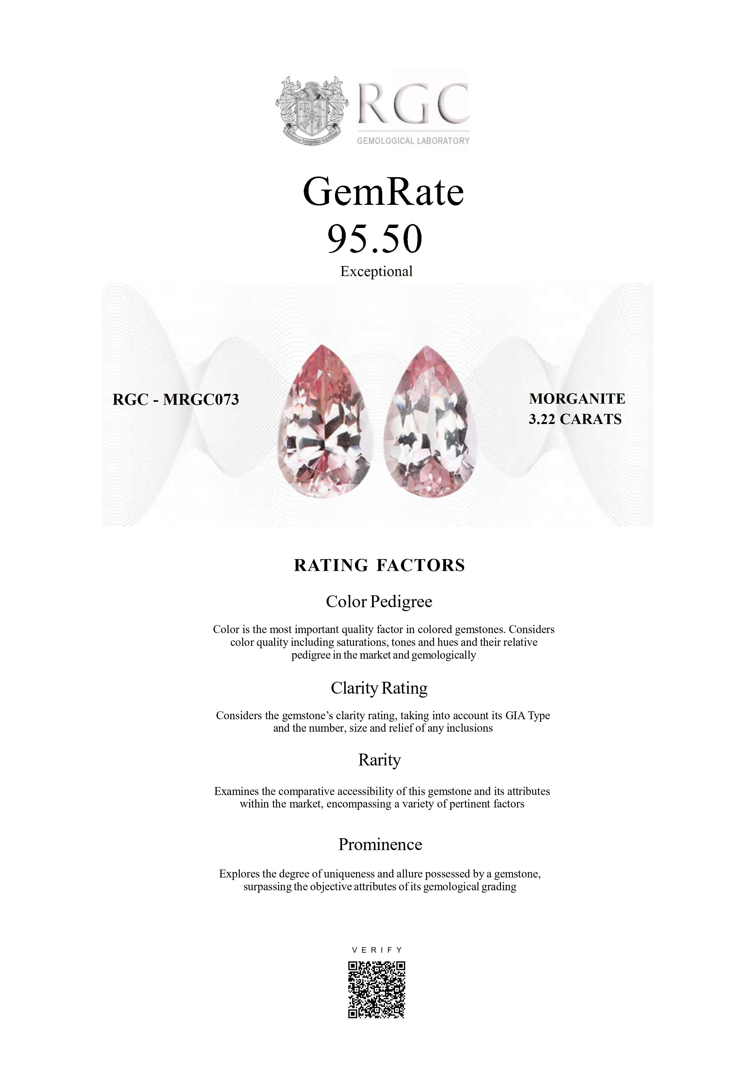 The RGC GemRate is a revolutionary system that addresses the importance and difficulty of comparing different colored gemstones with their peers in the marketplace. It assesses a wide variety of factors that exist in the marketplace and gemologically to classify gems in their genre using a standardized rating system. These factors are myriad but include quantifiable factors like color grade, clarity and cut, rarity factors examining relative rarity and also qualitative factors such as prominence, which examines the degree to which a gemstone stands out and captivates beyond just its measurable quality traits. It's essentially the stone's ability to catch attention and distinguish itself from others.