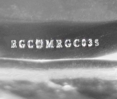 This image is an actual photograph of the laser inscription on this particular gemstone. Photography is done using a microscope camera at 45 x magnification to render the image.