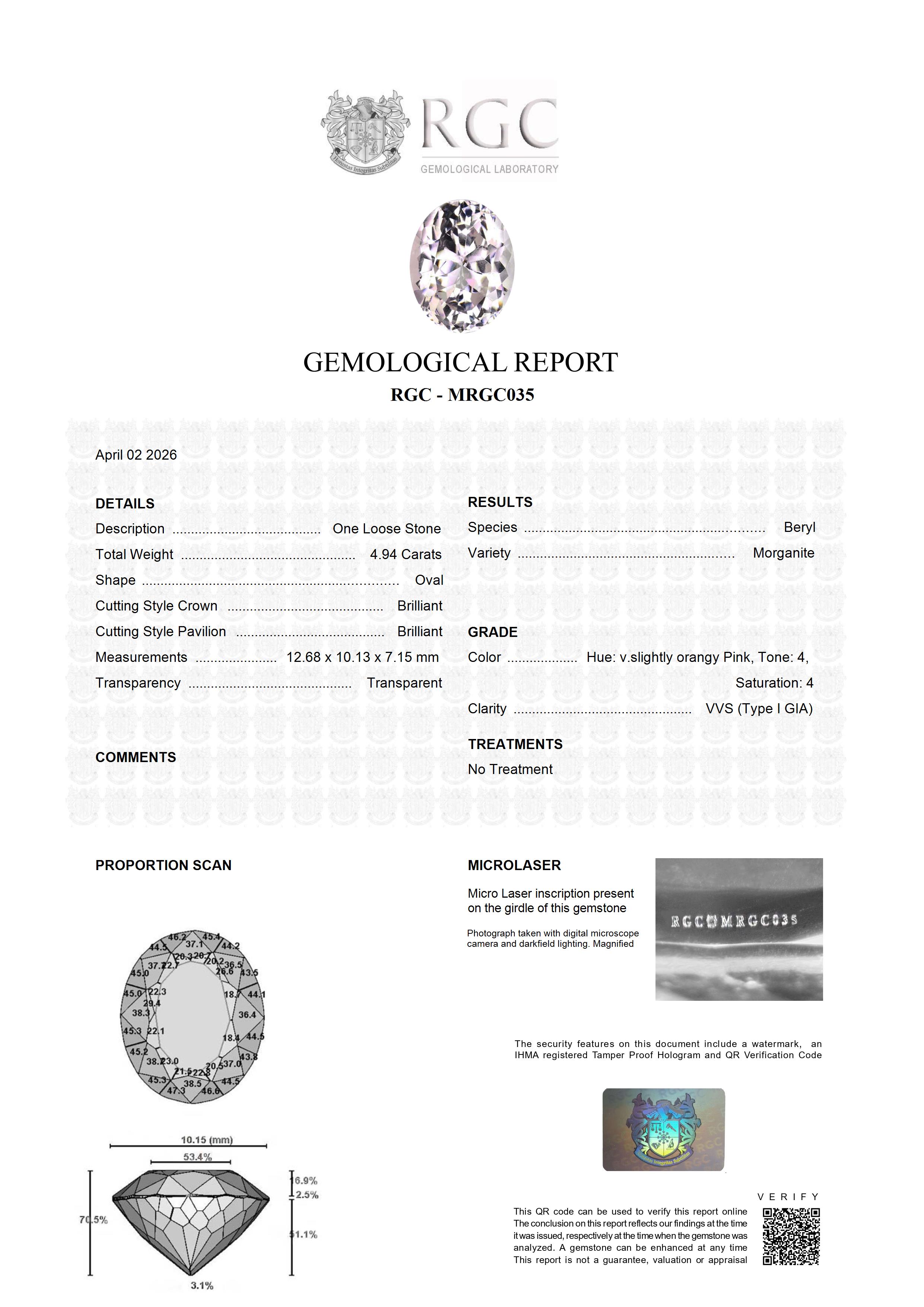 You can view the report in the “Grading and Laboratory Certification” section below.