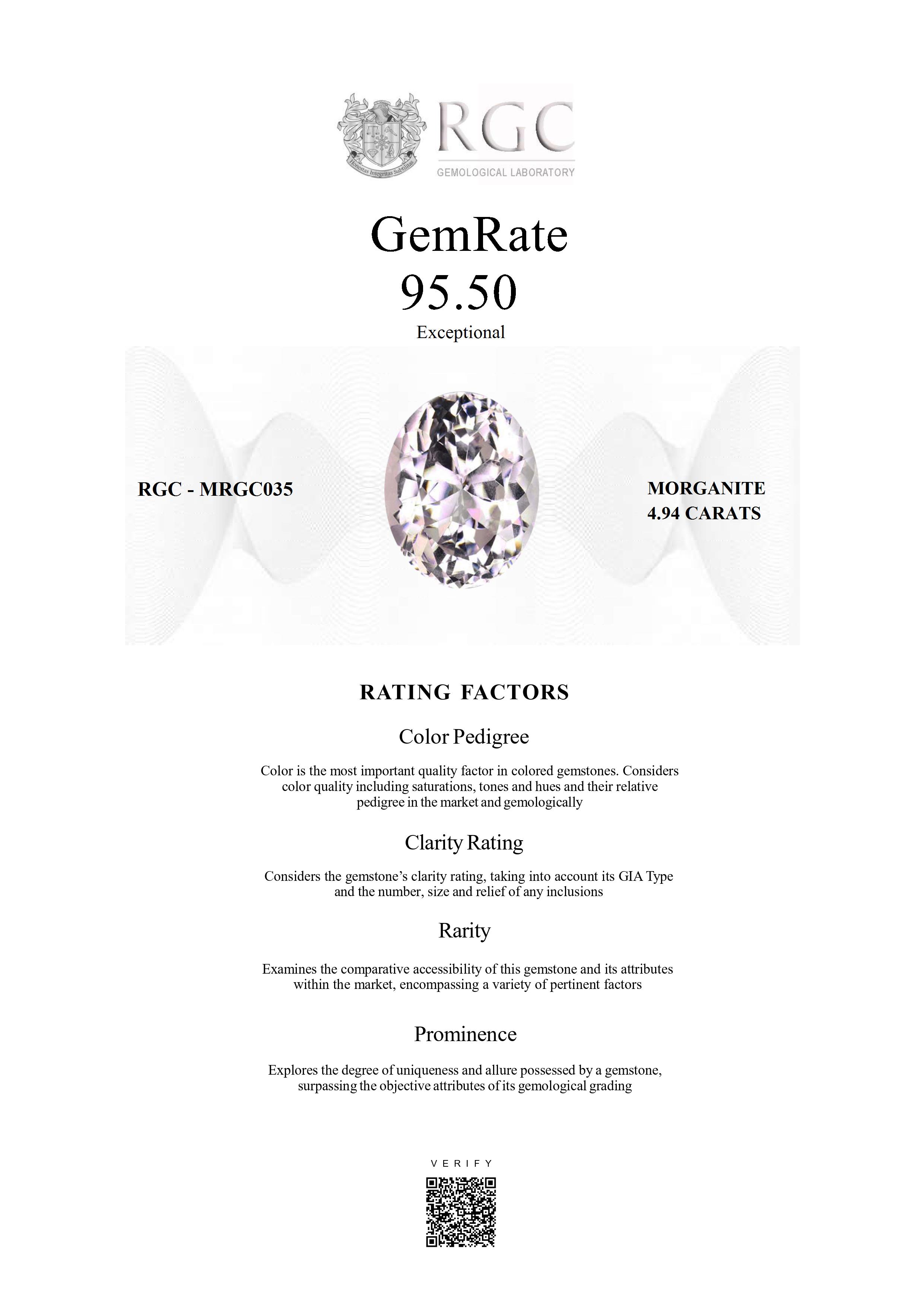 The RGC GemRate is a revolutionary system that addresses the importance and difficulty of comparing different colored gemstones with their peers in the marketplace. It assesses a wide variety of factors that exist in the marketplace and gemologically to classify gems in their genre using a standardized rating system. These factors are myriad but include quantifiable factors like color grade, clarity and cut, rarity factors examining relative rarity and also qualitative factors such as prominence, which examines the degree to which a gemstone stands out and captivates beyond just its measurable quality traits. It's essentially the stone's ability to catch attention and distinguish itself from others.