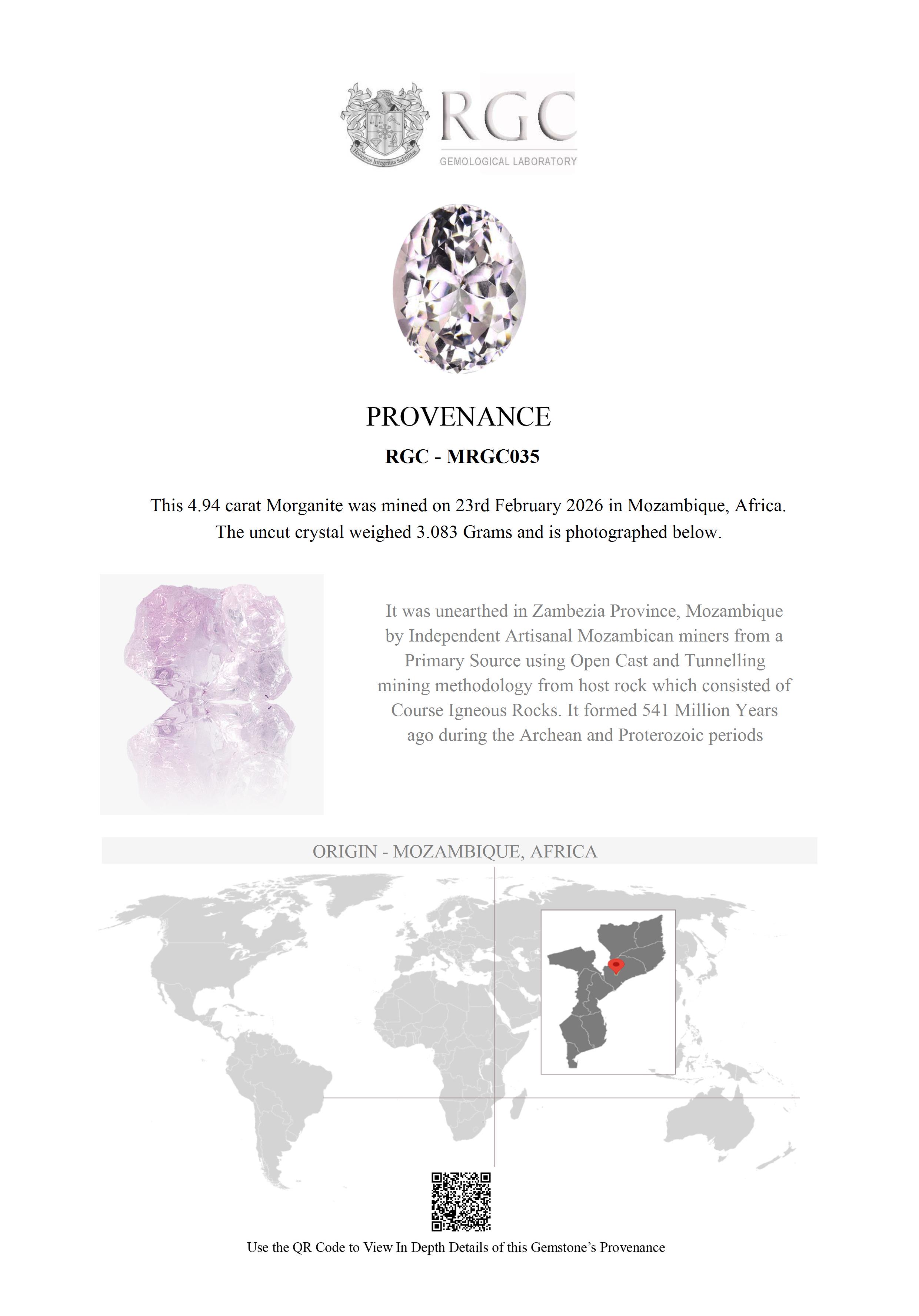 This mesmerizing Morganite hails from the remote African country of Mozambique. It formed hundreds of millions of years ago in the Archean and Proterozoic periods. In fact the entire geology of Mozambique is primarily extremely old Precambrian metamorphic and igneous crystalline basement rock, formed, in some cases more than two billion years ago.